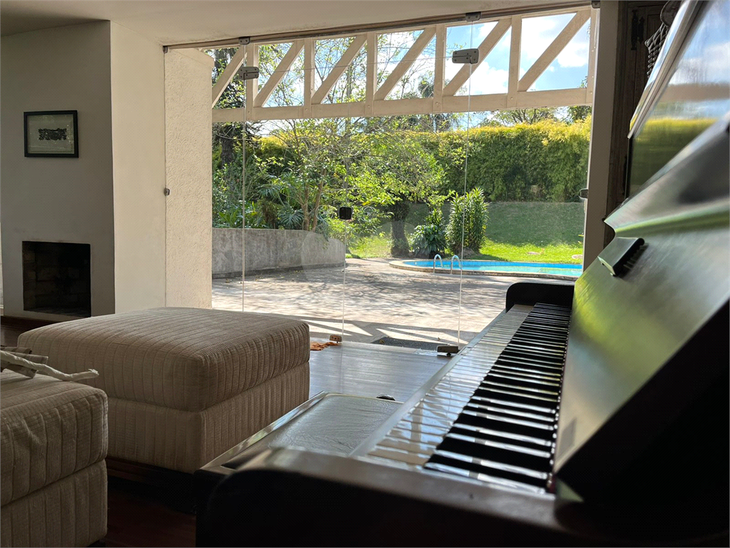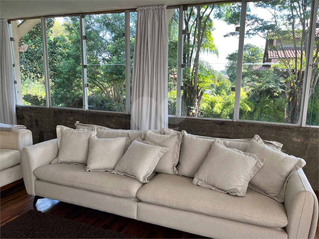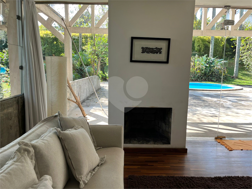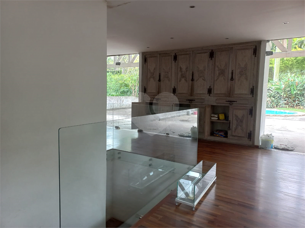 Casa para venda, Miolo da Granja, Granja Viana, Cotia. Bem localizada, 468 m2 construídos, 1530 m2 de terreno. Garagem 10 carros. Portão automático. Casa reformada com elementos de concreto aparente, piso em tanquinho palito novo, grande área verde com muitas árvores ornamentais e frutíferas, piscina, churrasqueira, câmeras de segurança. Dois andares. Sala ampla, de 72 m2, com estantes em madeira embutidas e lareira. Cozinha com bancada de 4 m em silestone branco e despensa. Lavabo e escada de acesso independente à área externa. Originalmente 6 quartos, convertidos em 4 quartos, sendo uma suíte master com closet e ar-condicionado, e um quarto preparado para ser transformado em suíte. Os outros dois quartos são servidos por mais um banheiro completo. Área externa conta com área verde, piscina, área de serviço composta por quarto de serviço, banheiro de serviço e área de apoio à piscina com vestiário, copa e banheiro. A casa possui aquecimento solar que abastece a cozinha e os banheiros. Há ainda instalação pronta para aquecimento também a gás e elétrico. R$ 2.200.000,00 (considera-se permuta por apartamento na região do alto da lapa, alto de pinheiros e redondezas)