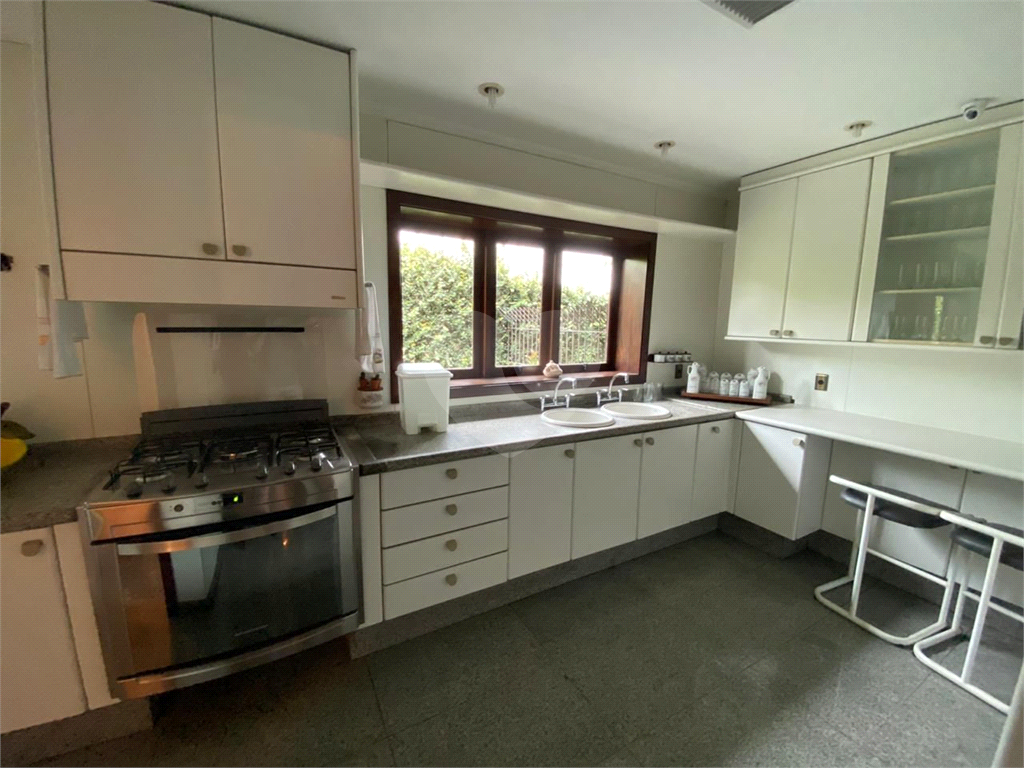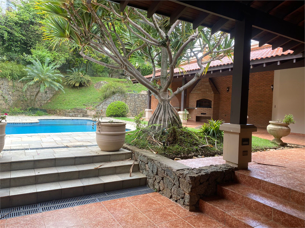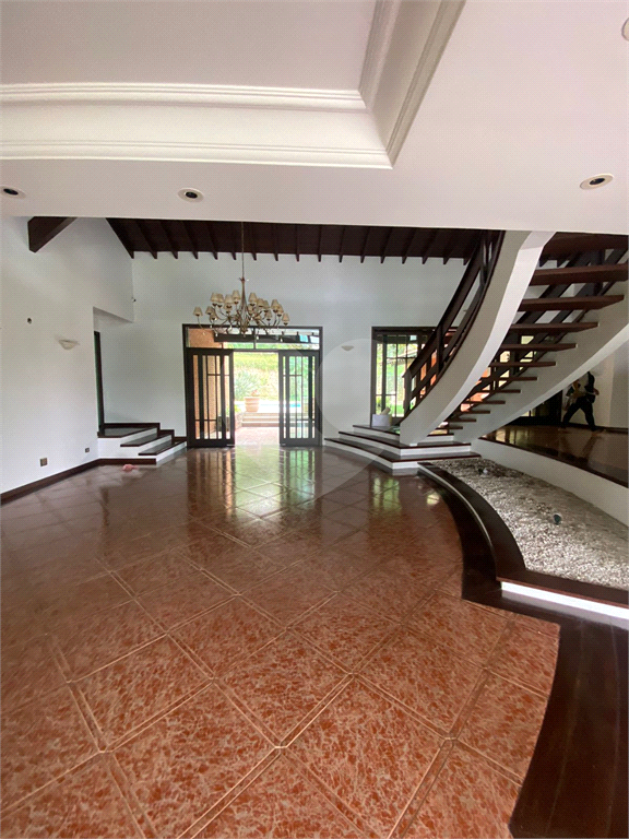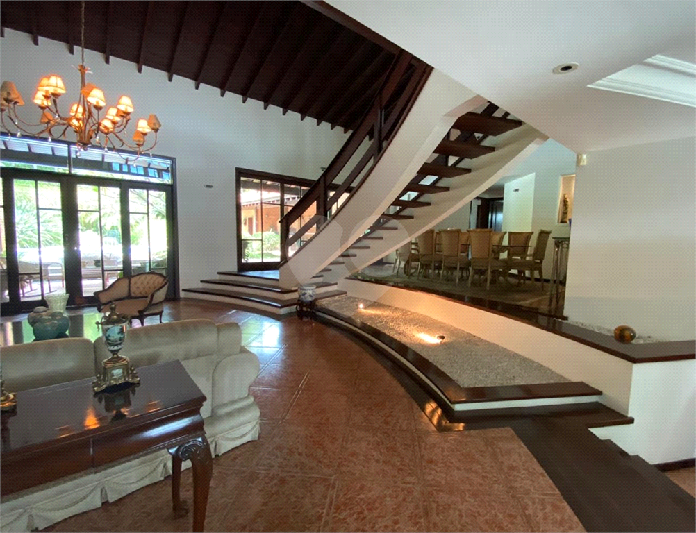 Sobrado para locação em Alphaville, Residencial Zero. São 4 suítes, sendo uma suíte de casal localizada no pavimento térreo e as demais no andar superior. Garagem coberta para 3 carros; Piscina; Banheiro externo com sauna; Sala de estar para três ambientes; Sala de almoço; Sala de jantar; Lavabo; Cozinha; Lavanderia; Jardim central; Jardim com acesso por escada; Varanda com churrasqueira. Casa para funcionários com sala, quarta, copa, cozinha, lavanderia e dispensa, podendo ser transformada em outra suíte.