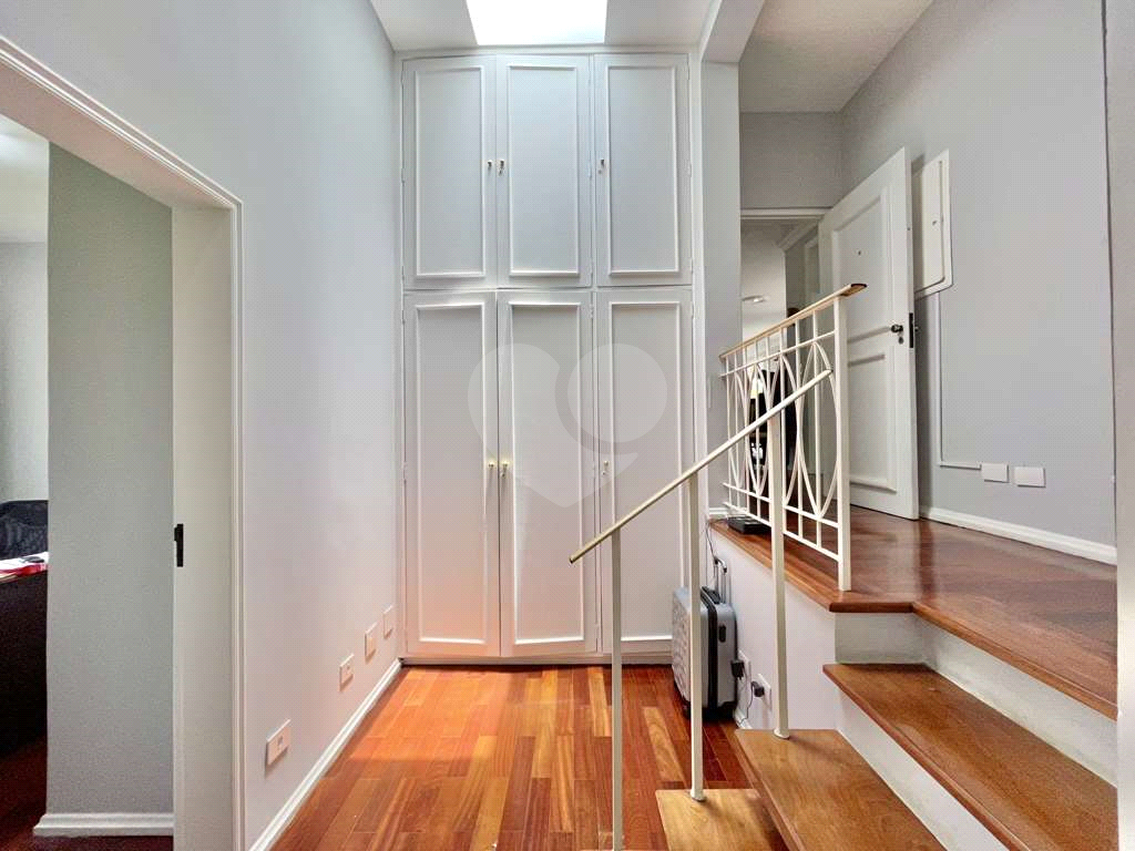 Hall íntimo com roupeiro e claraboia.