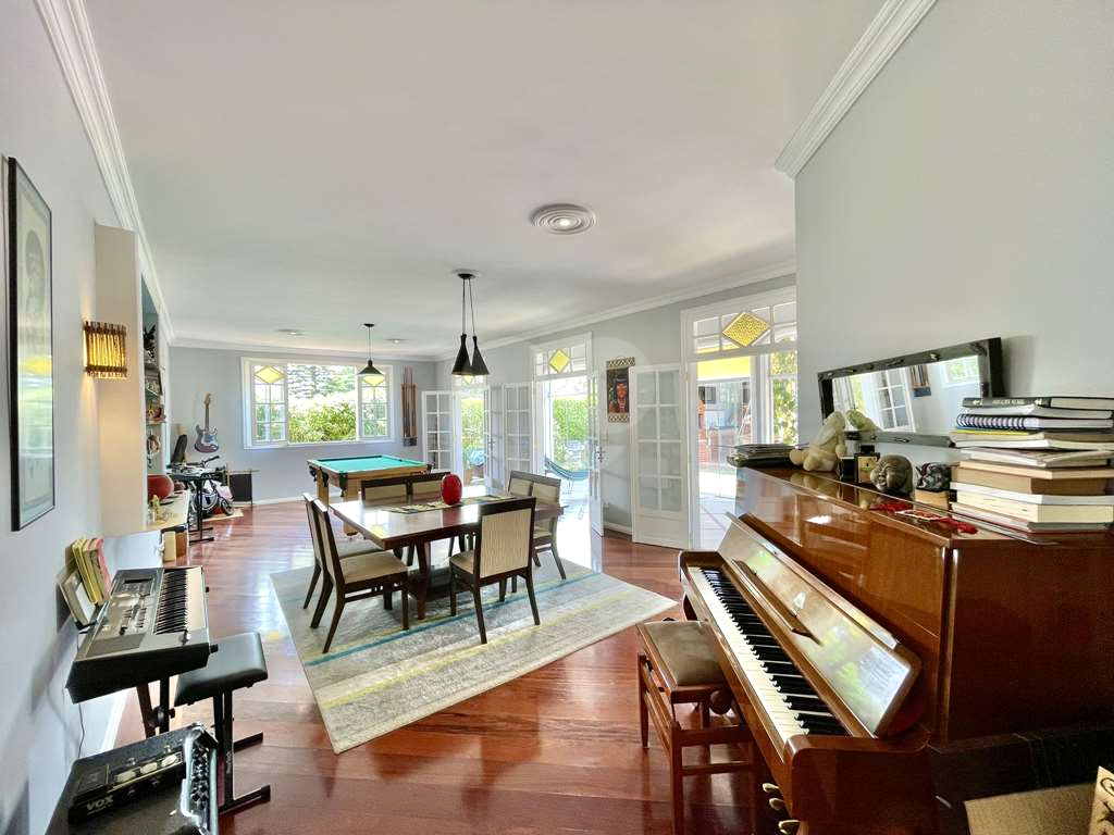 Salas de jantar/ bar, estar e música.